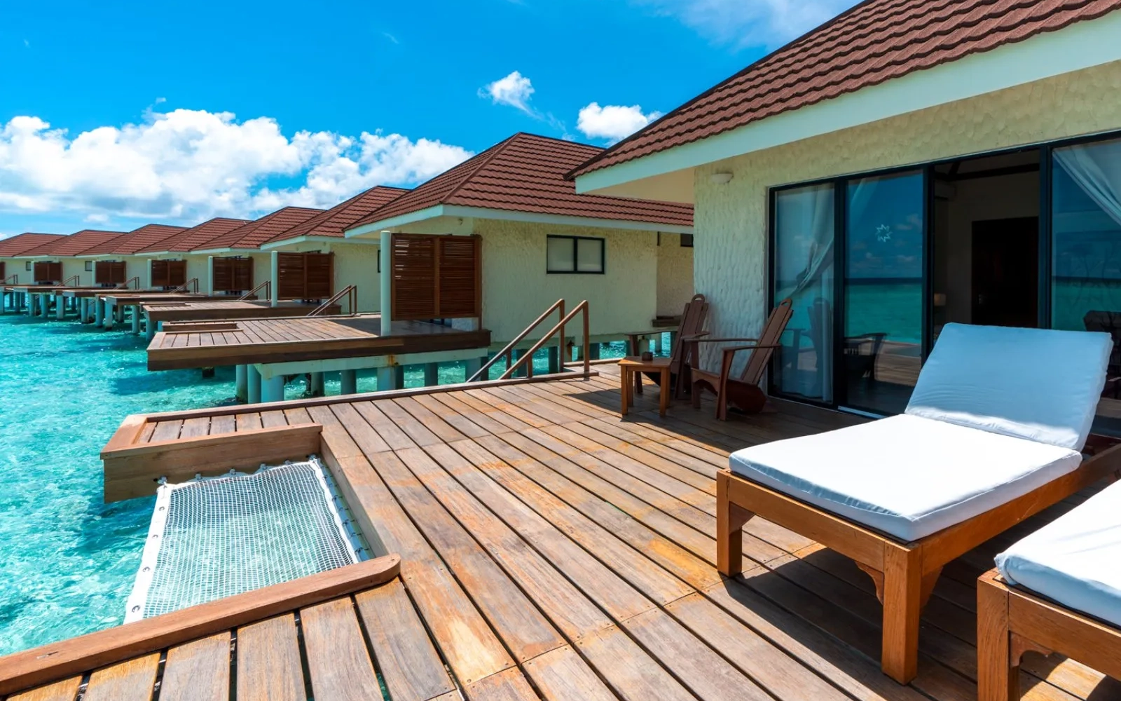 Infine, i 34 over water bungalow sono realizzati su palafitte con terrazze in legno recentemente rinnovate e ingrandite, dotate di amache sospese sul mare (max 3 adulti, età minima 12 anni). Inoltre, ogni bungalow offre 2 lettini, tavolino in legno sulla terrazza e accesso Wi-Fi gratuito per un dispositivo, permettendo agli ospiti di combinare lusso, comfort e connessione anche in vacanza.