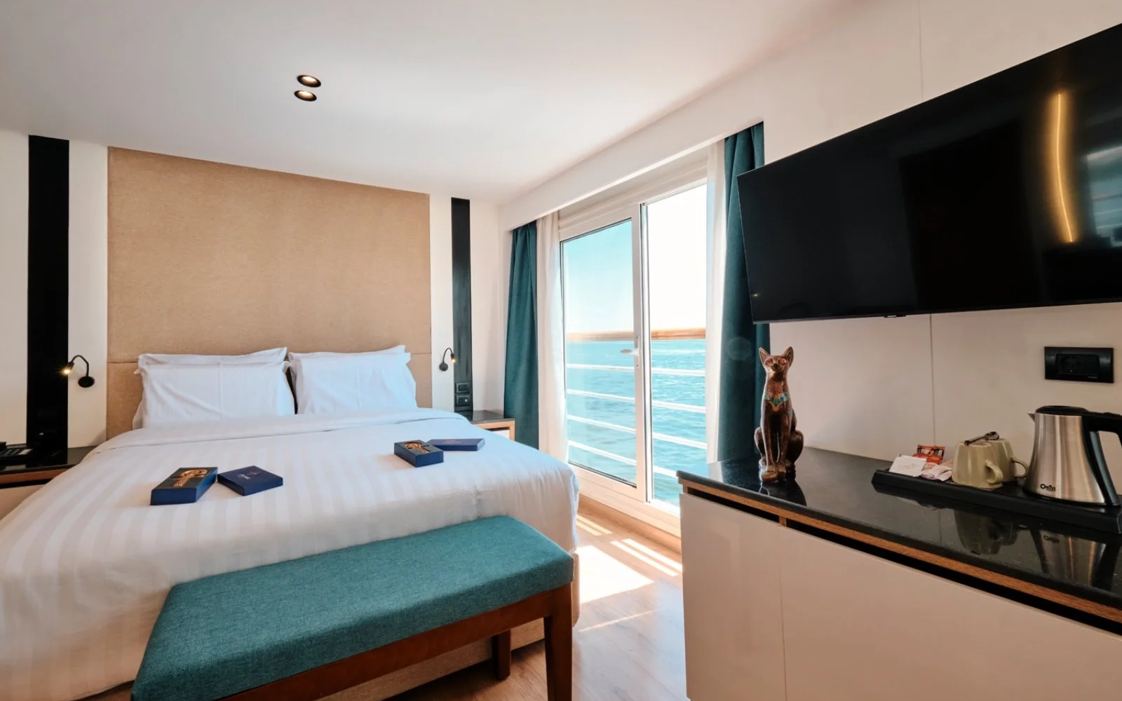La motonave Voyager Nefertari offre cabine eleganti e confortevoli, dotate di tutti i comfort moderni. Inoltre a bordo, gli ospiti possono godere di ristoranti, bar, piscina e aree relax, con servizio impeccabile e ambienti raffinati.
