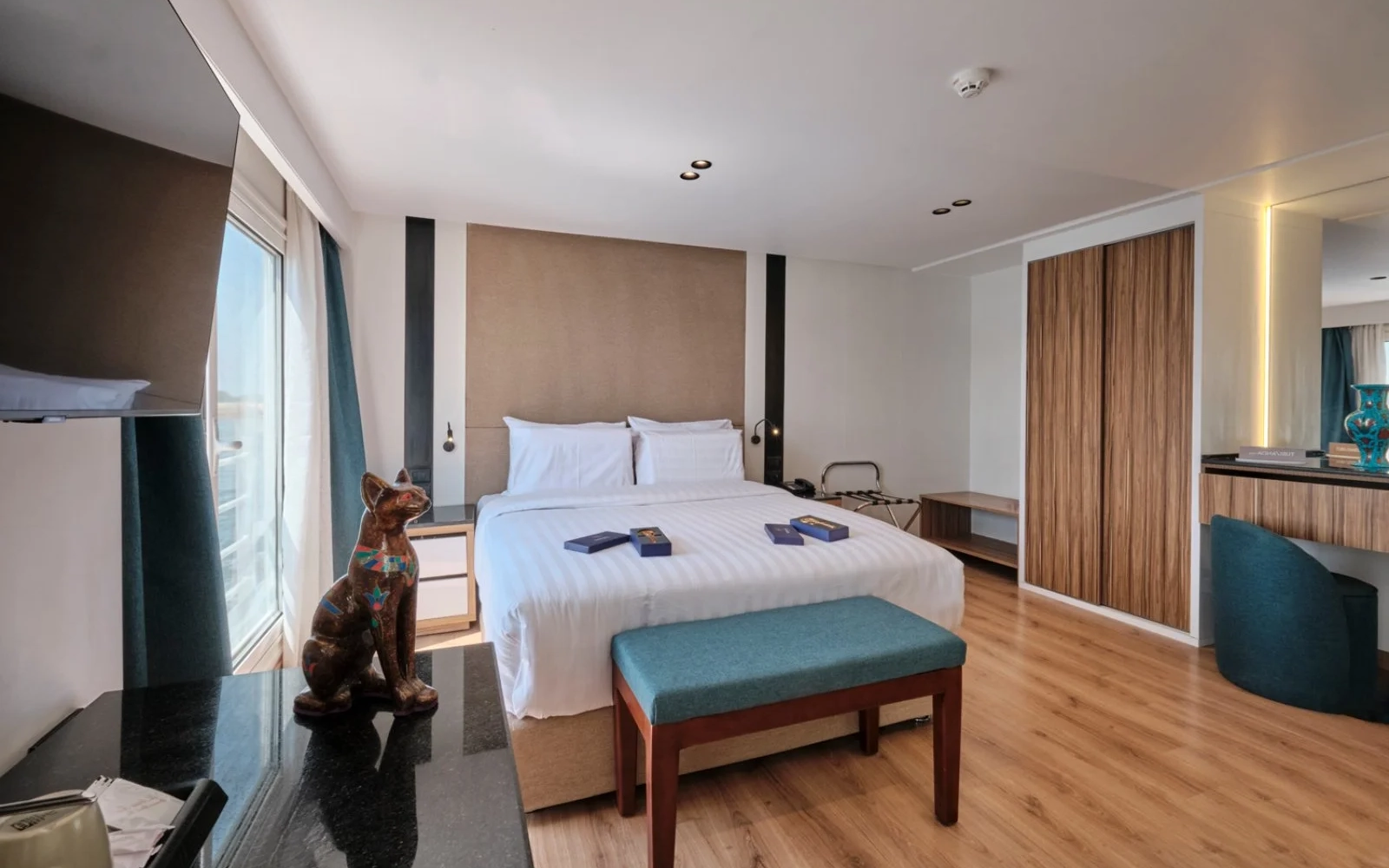 La motonave Voyager Ramses offre cabine eleganti e confortevoli, dotate di tutti i comfort moderni. A bordo, gli ospiti possono godere di ristoranti, bar, piscina e aree relax, con servizio impeccabile e ambienti raffinati.