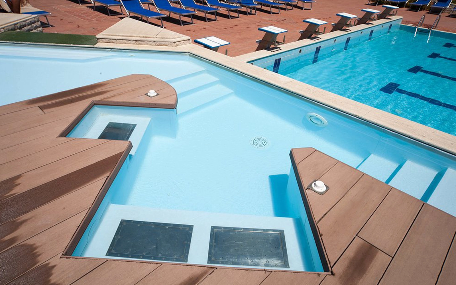 • Piscine: piscina semi‑olimpionica e piscina “caraibica” in acqua dolce, con aree solarium attrezzate.