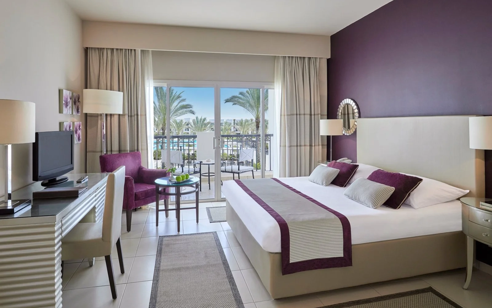 Il resort è costruito lungo la costa nel tratto protetto di Almaza Bay, con accesso diretto al mare. La baia è protetta dalle correnti. Dispone di 263 camere, molte pensate per famiglie, divise in vari tipi con vista mare, piscina o giardino.