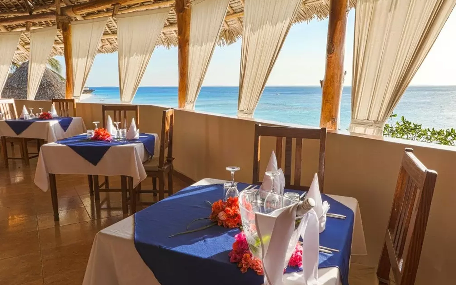 La formula All Inclusive include un ristorante principale con servizio a buffet, cucina italiana e internazionale, show cooking e serata tipica zanzibarina una volta a settimana. Durante la giornata sono disponibili snack e bevande presso il bar, ideale per cocktail e momenti di relax.